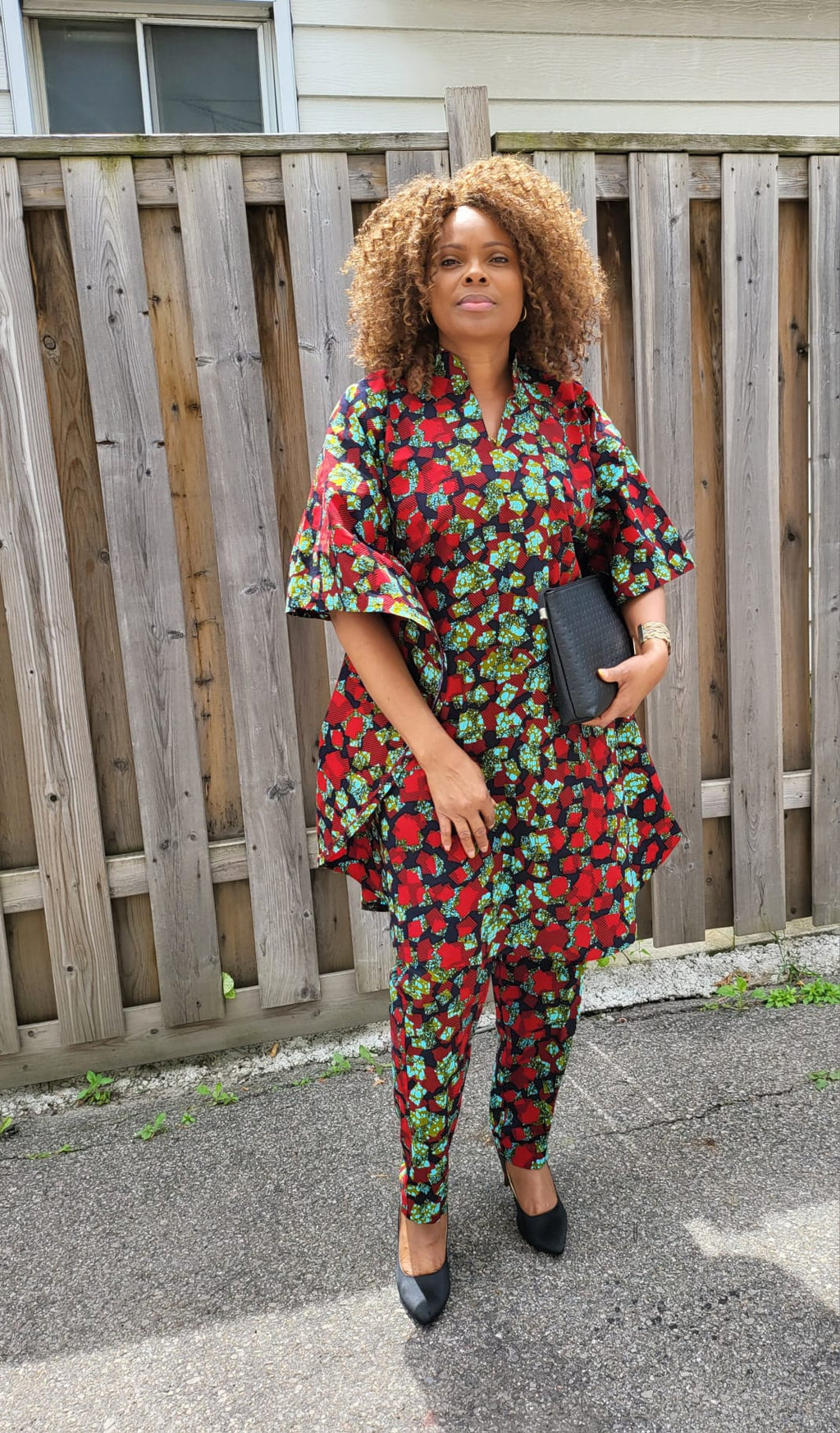 Gorgeous African Print Color Block Half Butterfly Dress. Bottom Slit, can be Worn Reversibly.