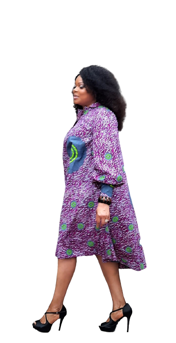 Stylish African Print Peplum Puffy Sleeve Dress With Front Button and Collar.