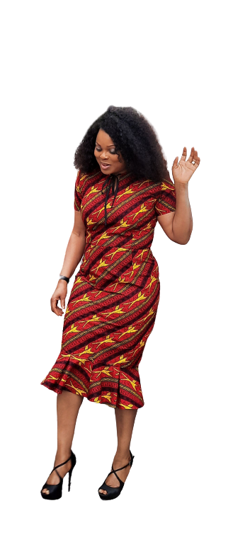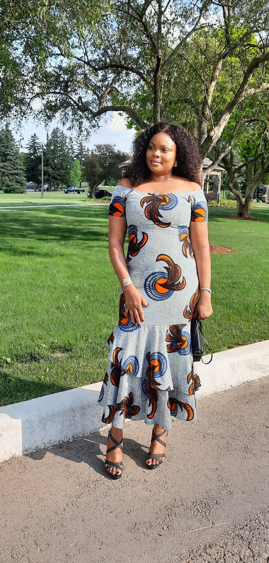 Gorgeous African Print Off Shoulder fitted Dress With Half Sleeve and Flare at the Bottom Edges.