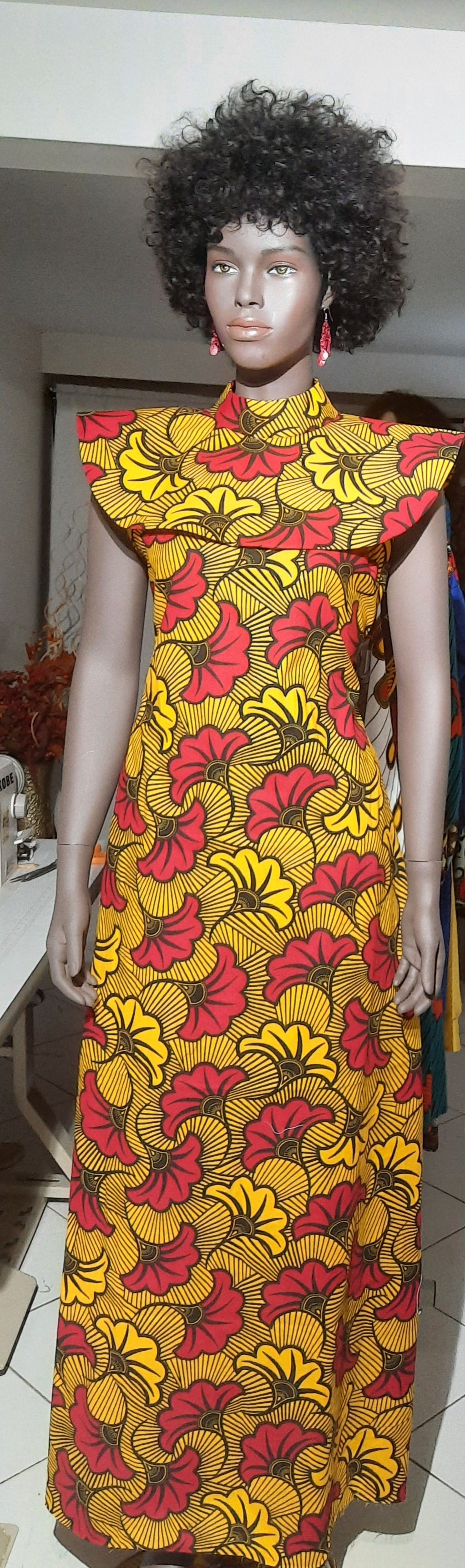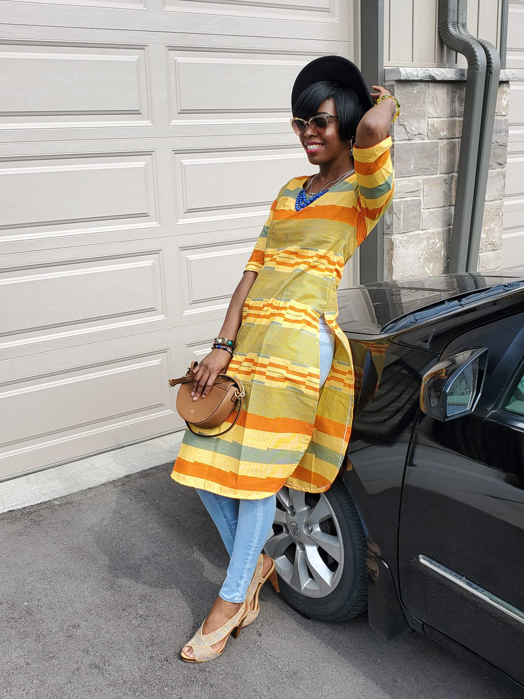 Stylish African Print Kaftan Dress-Neckline Cutout-Long Sleeve With Elastic Wristband.