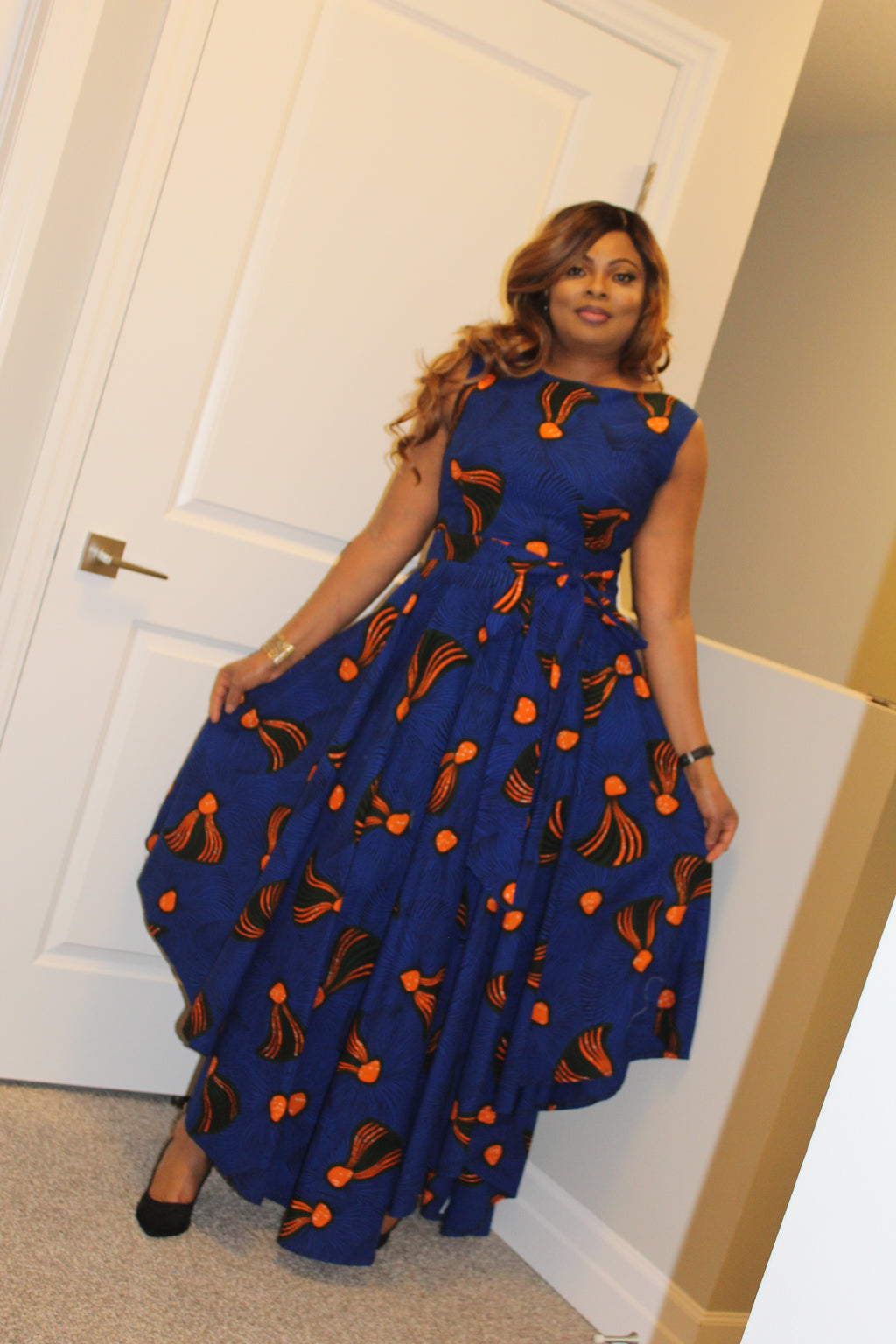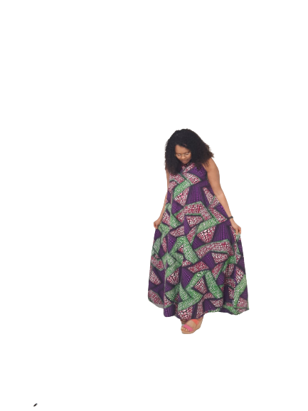Stylish African Print A-Line Halter Neck Dress With Pockets-Floor Length with Back Slit on the Neckline..