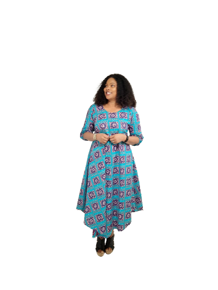 Stylish African Print Free Wear with Pockets, 3/4 Sleeve.